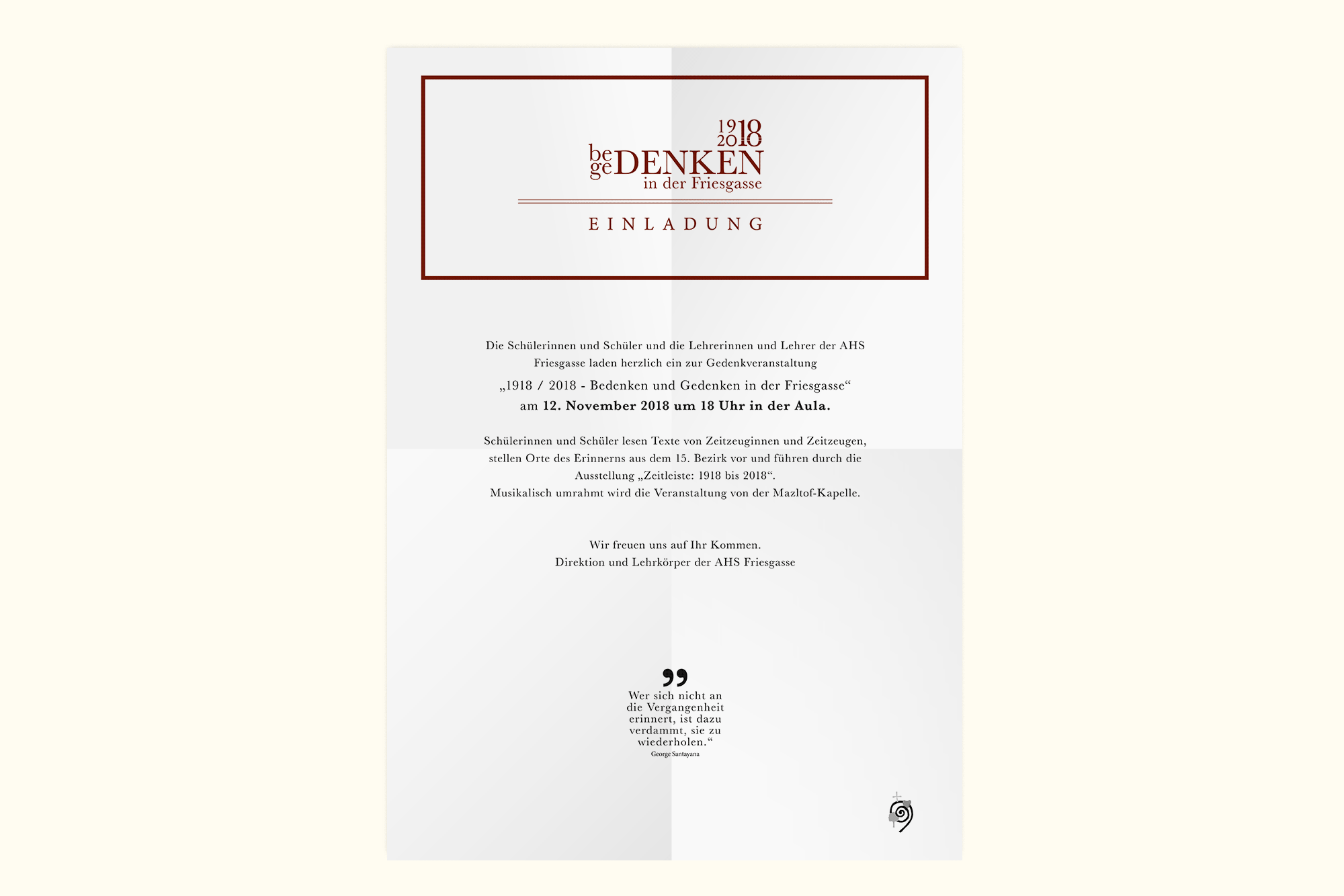 Poster for memorial event at Schulzentrum Friesgasse, Vienna.